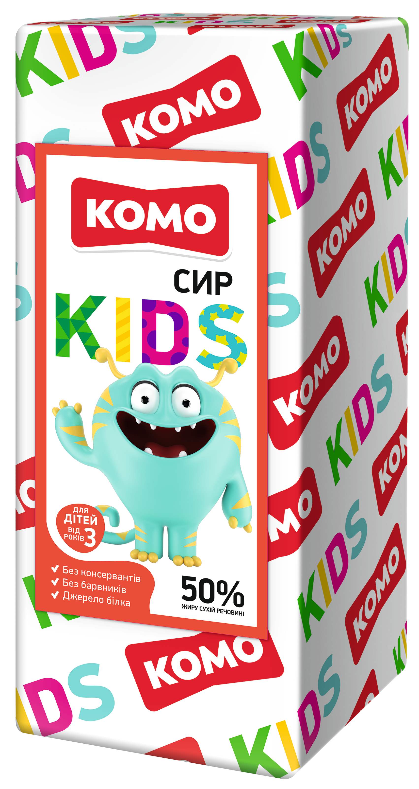 Ми в КОМО наважились створити найсмачніший сир для наших діток. Його розроблено та рекомендовано для дітей від 3 років. Він максимально ніжний, має вершковий легкий смак, м’якесеньку консистенцію та ідеально плавиться на гарячих бутербродах.